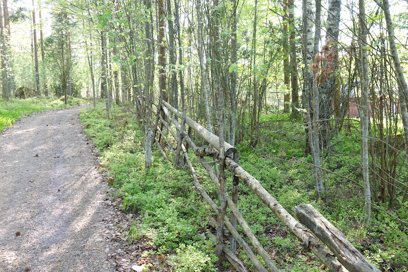 Matkalla on kaunista maalaismaisemaa, riukuaitoineen. Tämä aita olikin jo nähnyt aika monta kulkijaa, kun oli jo lahon oloinen.