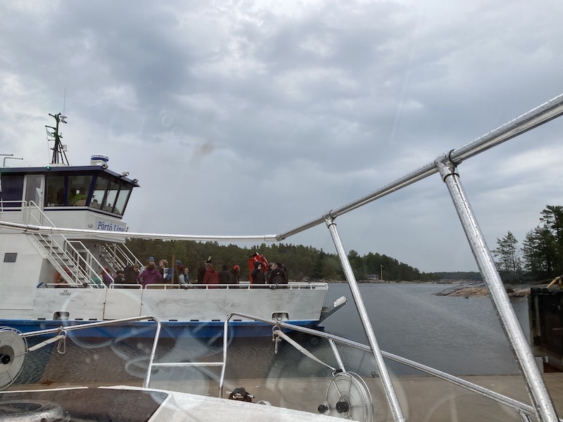 Iltapäivällä kävi yksi Sargo hetken piipahtamassa vieressämme, mutta muutaman tunnin oltuaan, lähti pois. Eli saimme pitää koko laiturin ihan yksin, paitsi lautta kävi pari kertaa hakemassa/tuomassa ihmisiä/tavaraa. Koululaisryhmä tuli kylläkin vasta torstaina ja me olimme jo tuolloin yhden yön ”veteraaneja” täällä.