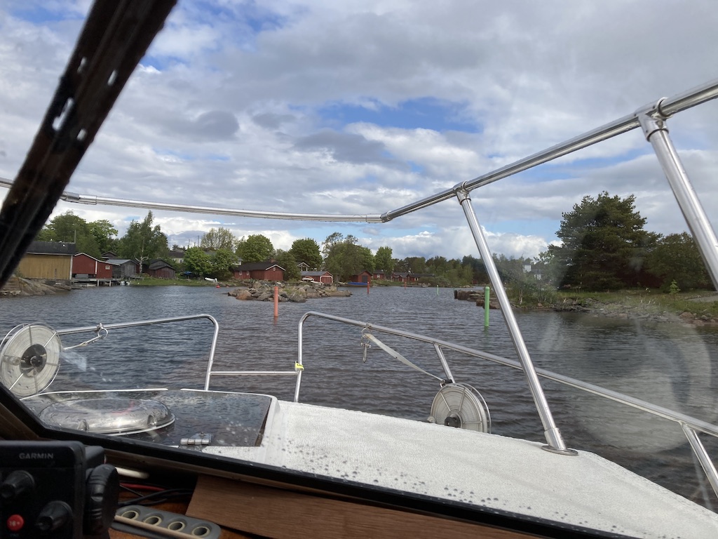 Matka taittui leppoisasti ajoittaisen vähäisen tihkusateen saattelemana. Mitä lähemmäs Haapasaarta päästiin, sitä isommaksi aallot nousivat, joskaan ei paljon hidastaneet menoamme.