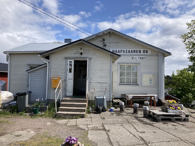Entuudestaan tiesimme, että kaupalle pitää mennä. Jos ei ole tarvetta ostoksille, niin ainakin maksamaan satamamaksu. Tämähän on Suomen pienin osuuskauppa ja ympäri vuoden auki.
