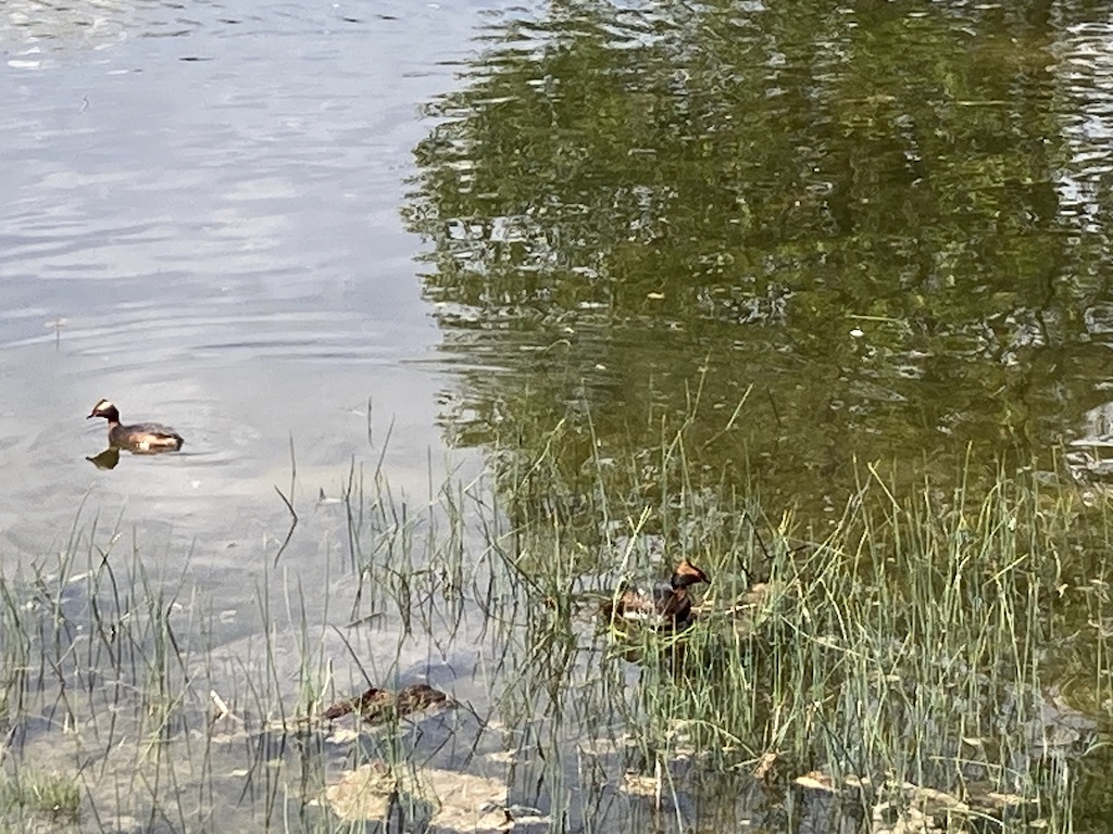 Veneestä katsoen oikealla lokin pesä ja vasemmalla mustakurkku-uikkun.