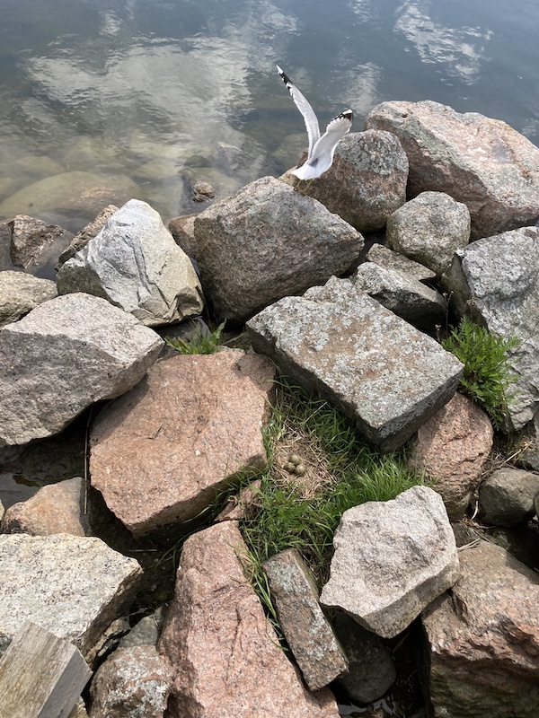 Muutaman kerran kun kävelin sillalla, lokki alkoi jo tottua minuun, eikä enää lähtenyt hautomishommista mihinkään.