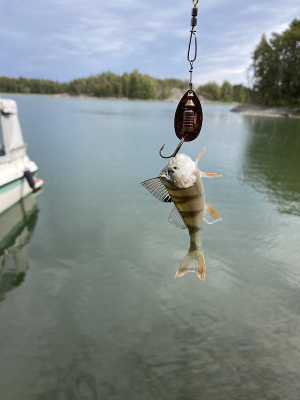 Ei ollut paljoa uistinta isompi, korkeintaan sellainen 13-14 senttinen ja kiduskannesta kiinni. Tämä siis puolilta päivin.