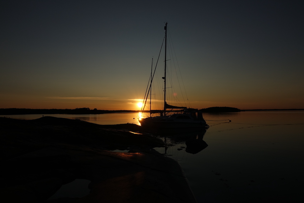 Aamulla päätettiin sittenkin yrittää uudelleen Sandön rantaan. Tuulen suunta oli vaihtunut eteläiseksi, joten rantautumisen pitäisi olla helppo.