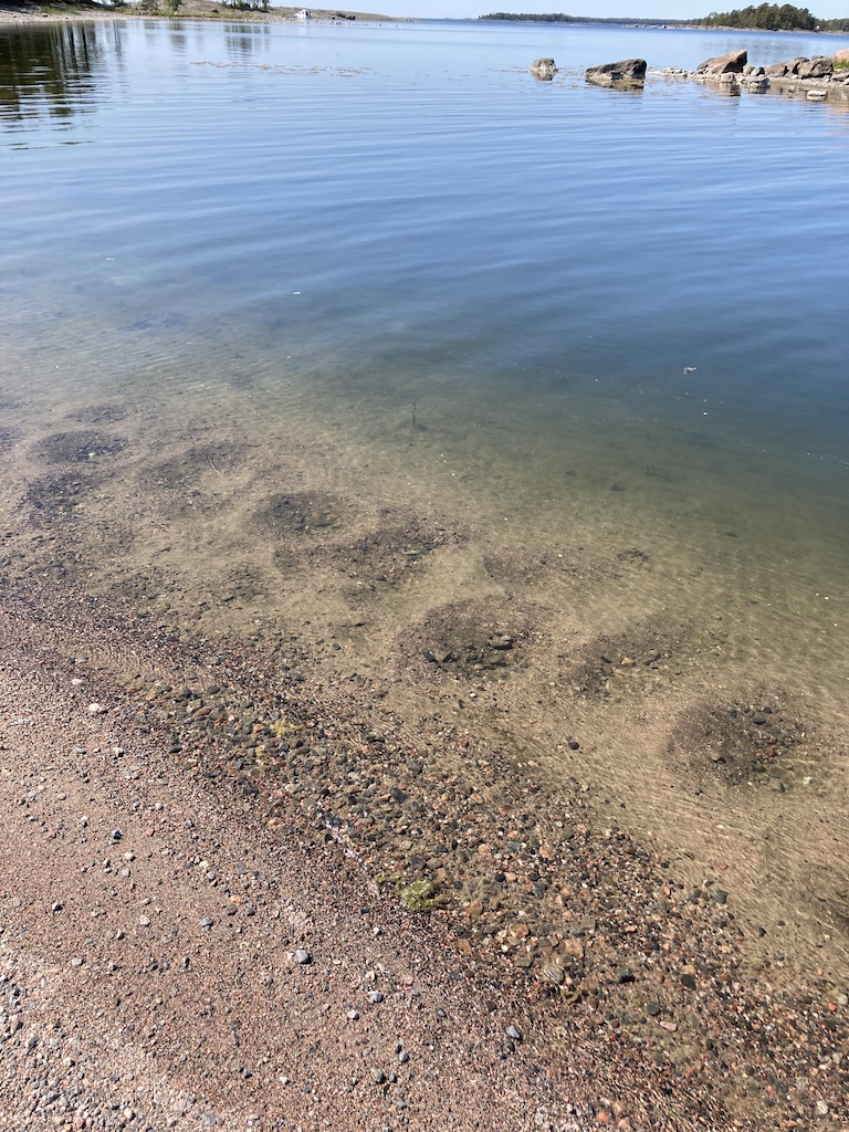 Rannassa hyvin malassa vedessä oli erikoisia monttuja. Liekö jonkin kalan kutumonttuja?