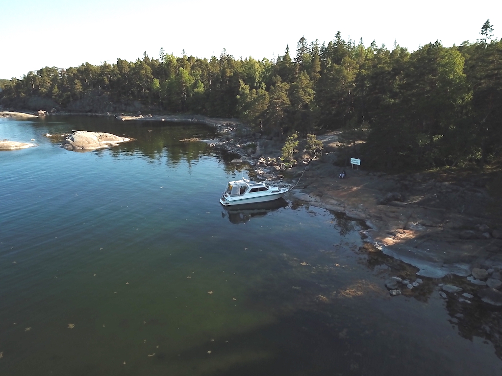 Siinä kohtaa, missä ne kiinnitysrenkaat ovat, on meille aivan liian jyrkkä kallio. Purkkariporukalle ihanteellinen äkkjyrkän rannan ansiosta.