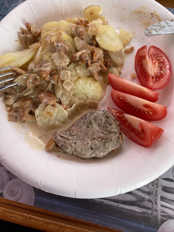 Kummatkin saatiin kaksi pientä pihviä. Oli siitä fileen häntäpalasta tehty, siksi niin pieniä, mutta maku ja mureus oli silti kohillaan. Olivat saaneet pippuri-öljyssä muhia muutaman tunnin, joten kerkesi maustua edes vähän paremmin. Oli aikas hyvää.