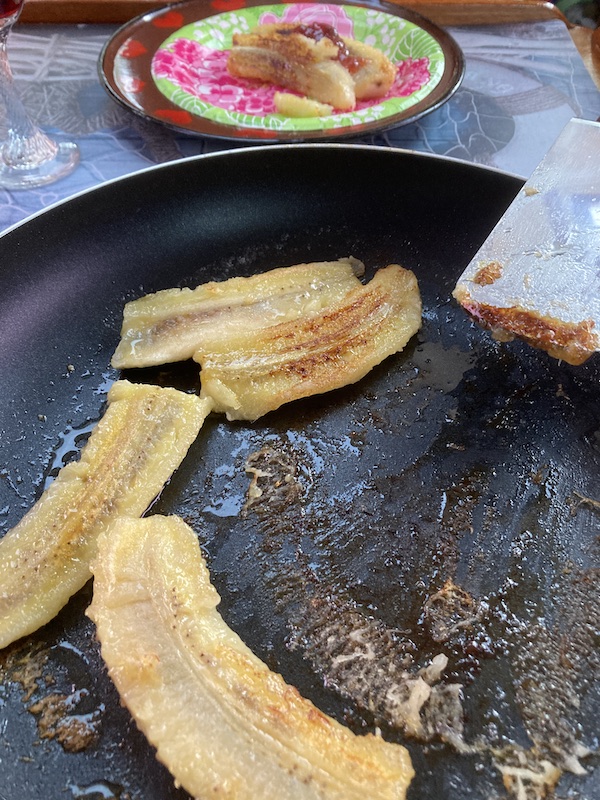 Iltapalaksi tänään tein paistettuja banaaneja. Mansikkahillon kanssa menetteli 😉