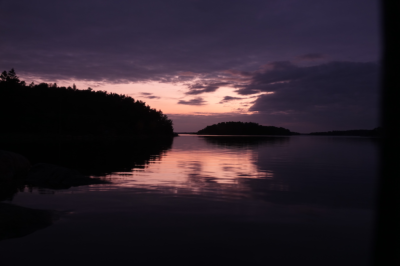Palasimme samaan saareen takaisin, Massholmeniin. Tuossa lähellä olisi ollut muitakin paikkoja rantautua, mutta aika navakka luoteen puoleinen tuuli kävi niihin ikävästi. Tässä saimme olla kuin herran kukkarossa.