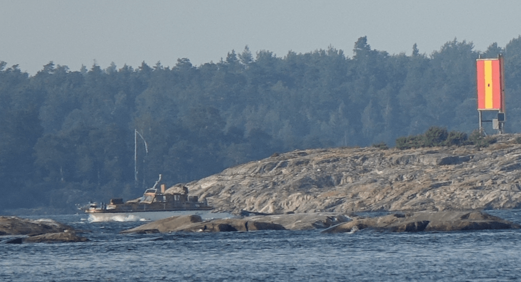 Täältä näkee väylälle hyvin. Ajattelin ottaa kuvan tuosta linjataulusta enkä yhtään huomannut, että siihen tuli samalla vene. Tuonne on matkaa melkein pari mailia, noin kolmisen kilometriä. Paljaalla silmällä en havainnut mitään venettä enkä zoomatessakaan sitä huomannut. Kuva on rajattu aika rankasti jolloin vasta huomasin veneen. Aika hyvä kamera tämä Sony RX10 M3. Kuva on otettu ilman tukea veneestä.
