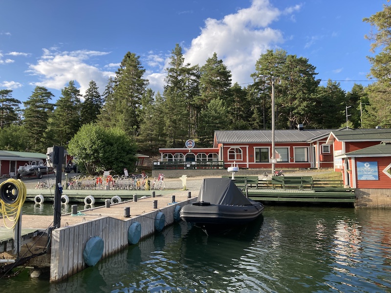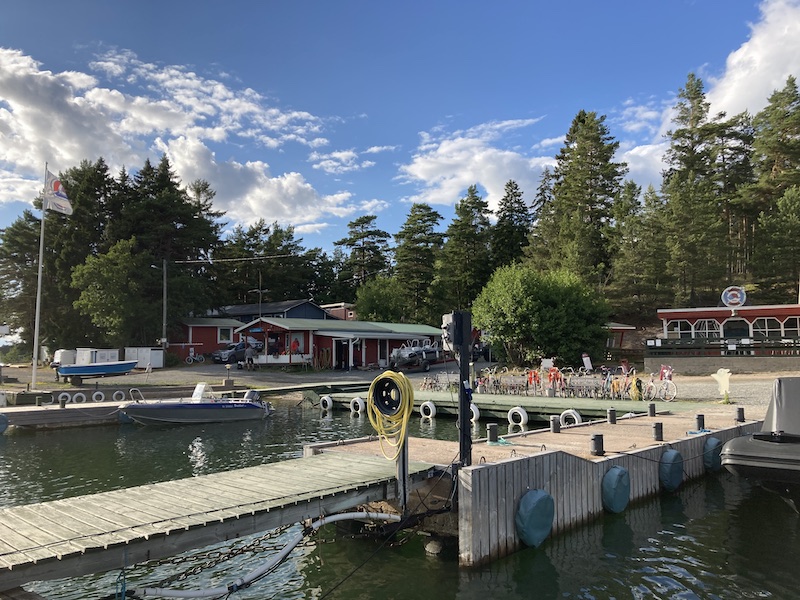Alakuvassa entinen ravintolarakennus, missä vasemmassa päädyssä toimii kirppis ja oikeassa päädyssä sauna ja pesutupa. Ilmeisesti tämä satama on pikkaisen liian pieni, vain n 30 vieraspaikkaa, ylläpitämään ravintolaa. Jos paikallisetkaan eivät käytä, niin vaikea on yhtälö. Ainakin ravintolan pitäjän kannalta.