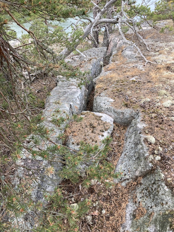 Tämä länsi puoli saarta onkin melkein paljaiden kallioiden vuoksi helppokulkuista. Käveltyjen kohdilta kallio on puhdas, kun taas muualla saattaa olla jäkälää tai jotain muuta matalaa kasvustoa.
