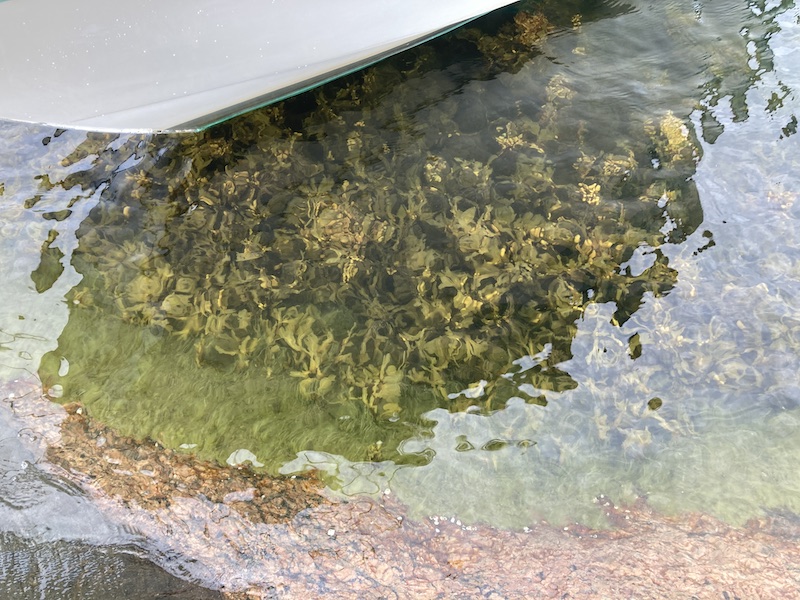 Vesi on näillä seuduilla todella kirkasta. Rakkolevää on runsaasti ja se voi hyvin. Ainakin näin maallikon mielestä. Lippaakin heittelin muutaman kerran, mutta ei olleet ahvenet paikalla.