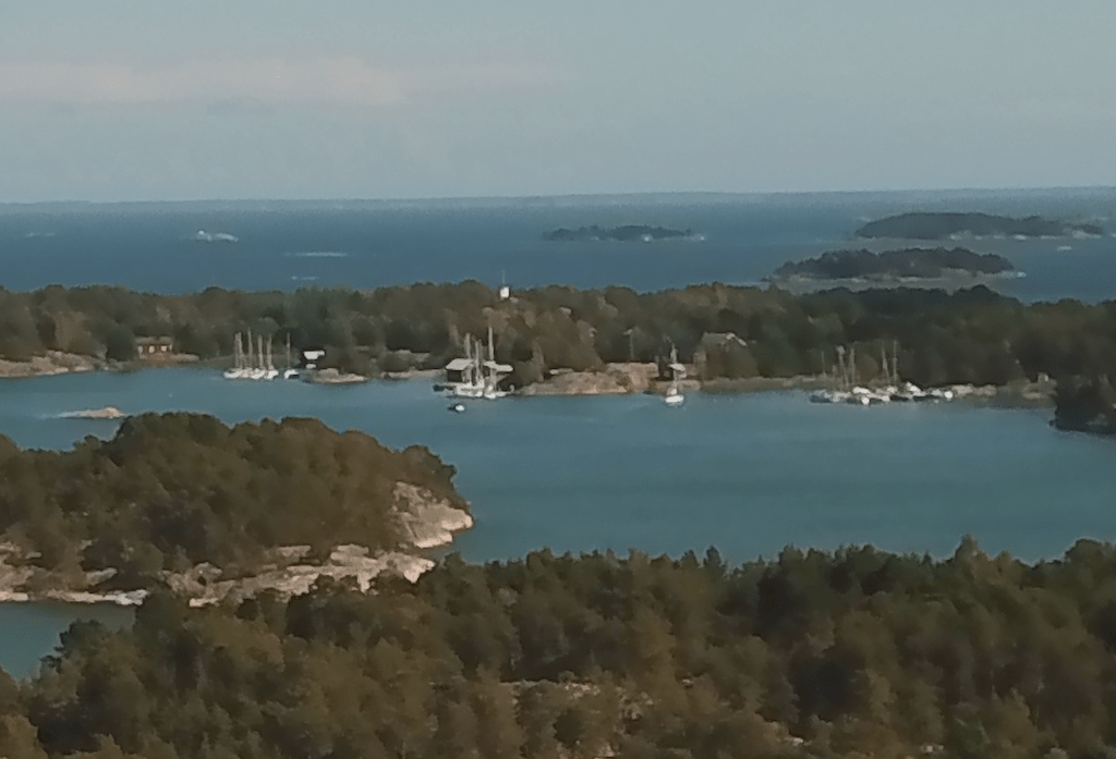 Tuulesta huolimatta, laitoin Mavicin töihin. Korkealle en uskaltanut mennä. Mutta sen verran hätäisesti uskalsin, että Gullkronan satama näkyi. Kuva on suurennettu ja rajattu reilusti, koska muuten ei olisi saanut mitään käsitystä, onko kuinka täyttä. Mielestäni on.