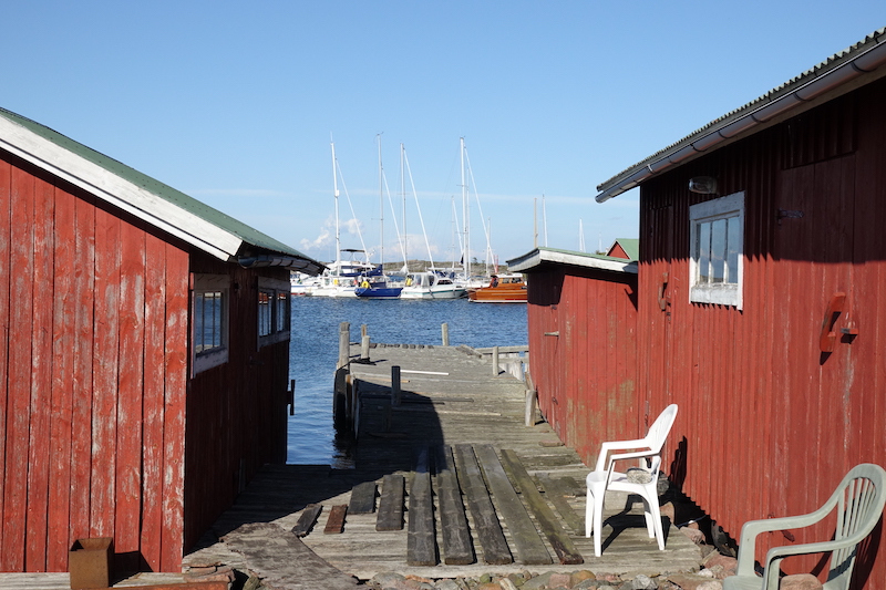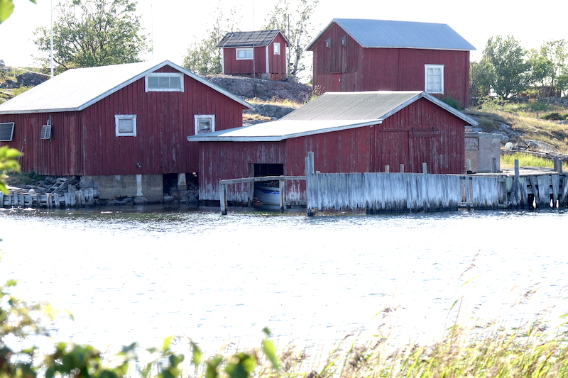 Sataman vastapäisiä vene-tai verkkovarastoja.