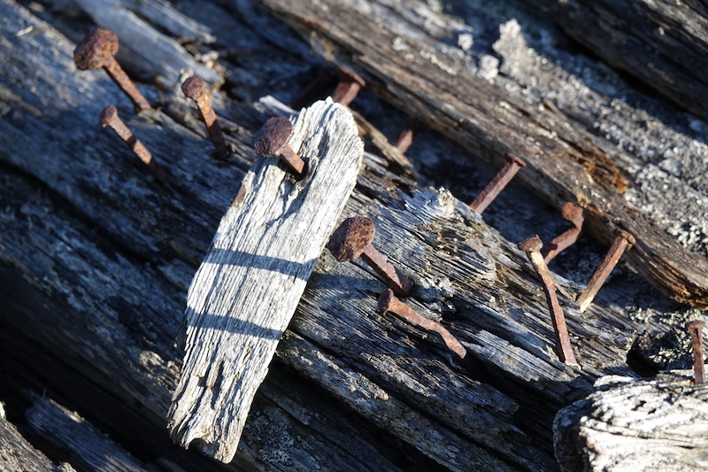 Osa nauloista on sepän tekemiä. Vähän oli paikkailtu kaupan nauloilla, mutta ei tässä tapauksessa sekään ole auttanut.