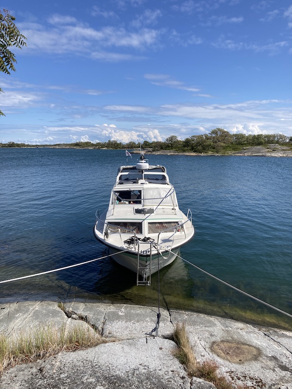 Olin etukäteen katsonut saaren. Partiolaisten merkitty paikka. Tässä saariryhmässä olisi ollut useampikin paikka, mihin veneensä olisi voinut kiinnittää. Heidän merkitsemiä satamapaikkoja on todella paljon saaristossamme lähestymisohjeineen. Suosittelen tutustumaan, jos entuudestaan ei ole tuttu. Edellyttäen, että ylipäätään haluaa luonnon satamissa yöpyä.