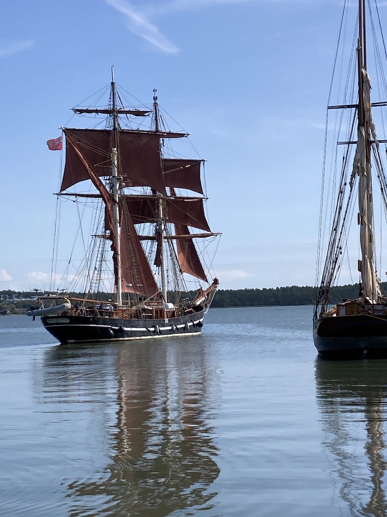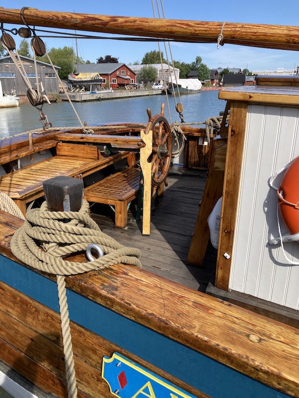 Lähtöjädelle kun tulimme, oli se iso purjelaiva juuri lähdössä. Uljaan näköistä on tällaisen hidas lipuminen satamasta. Tuossa touhussa ei hötkyileminen auta.