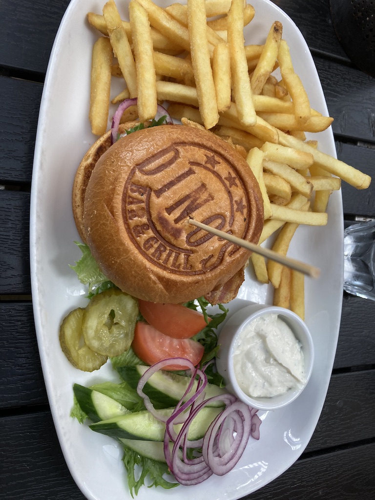 Hyvillä mielin menimme Dino’s ravintolaan syömään. Oli vähän erilainen hampurilaisen sämpylä.