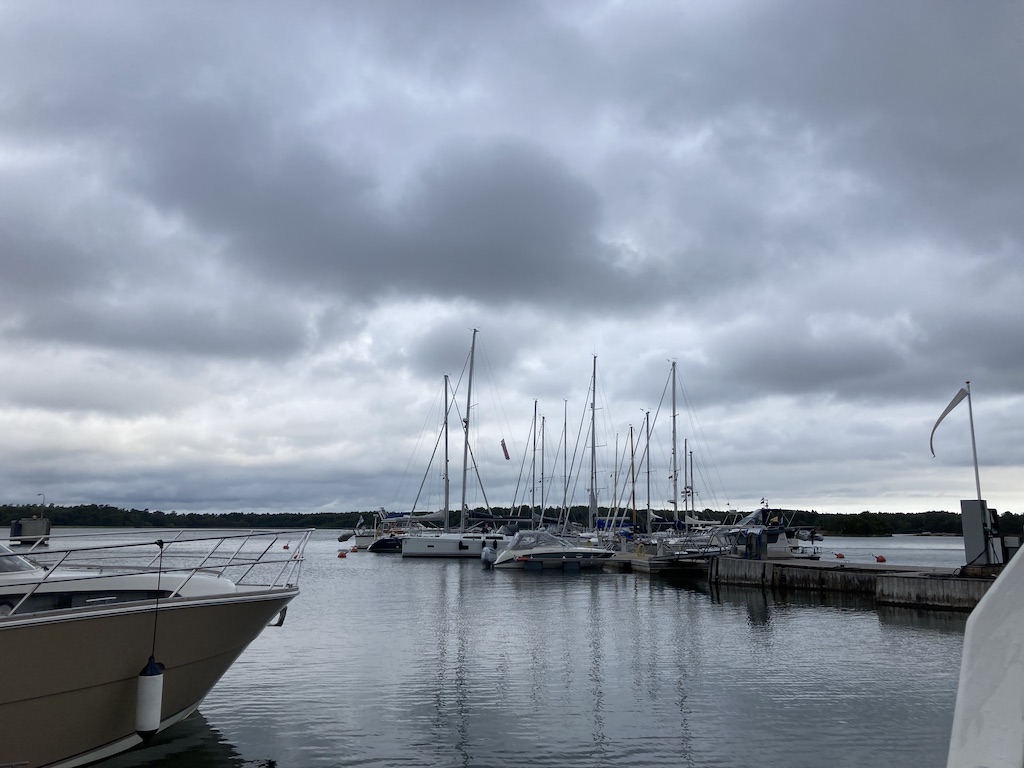Sen verran oli onneksi taukoa vedentulossa, että kuivin jaloin päästiin satamakonttorissa käymään. Yhden yön hinta on tänä vuonna 36.- €. Sisältää saunan ja sähkön.