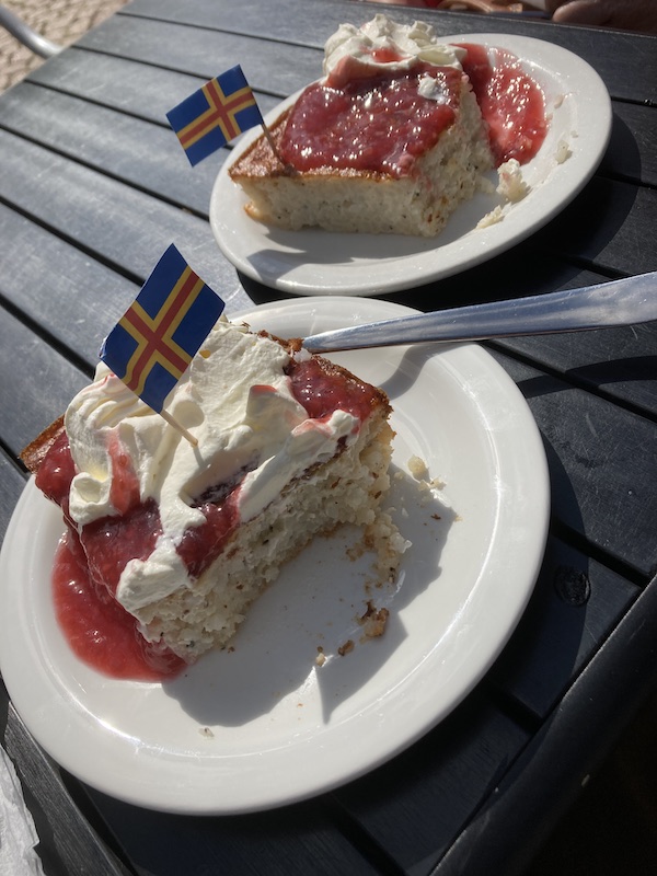Ettei ihan kultturiähkyyn olisi tuupertunut, päätettiin nauttia myös toisenlaisesta paikallisesta herkusta. Ahvenanmaan pannukakku.