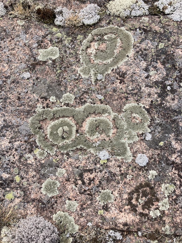 Onneksi täällä kävellessä joutuu katselemaan jalkojaan. Voi vaikka välillä tehdä kalliossa erilaisia havaintoja. Kuten tällaiset kasvustot. Jokainen voi ihan itse mielessään miettiä näitä kuvioita.