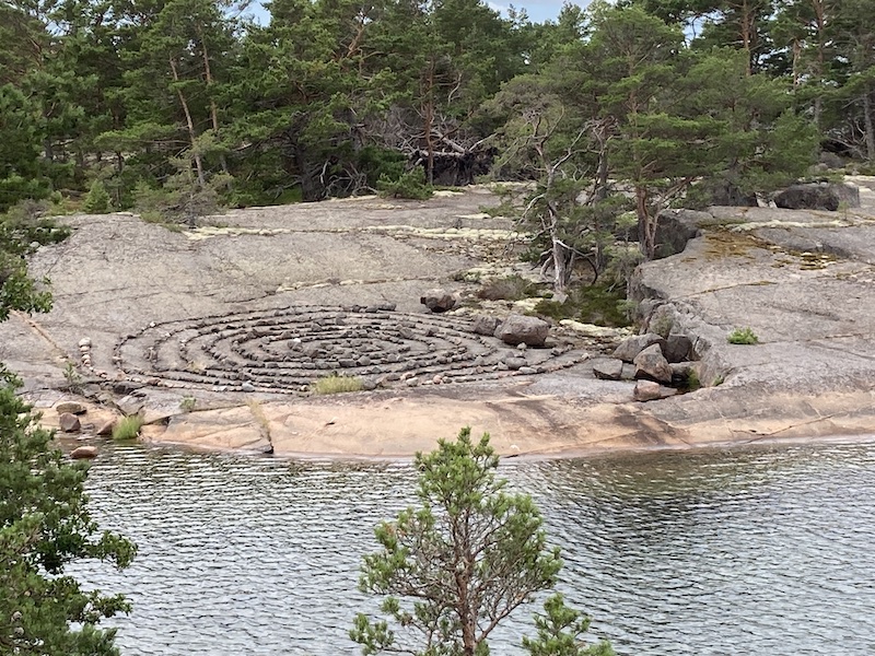 Saaren länsikolkassa on Jatulintarha. Osa ulommista renkaan kivista selvästi laitettu ”vähän” aikaa sitten. Eivät ole ottaneet vielä mitään värimuutosta eikä kasvustoakaan ole päällä. Sen sijaan sisemmät voivat ollakin vanhoja. Emme viitsineet lähemmäksi mennä, kun olisi pitänyt kiertää aika pitkältäkin päästäkseen tuonne alas.