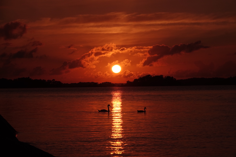 Illan tullen tulivat joutsenet lähelle ruokailemaan.