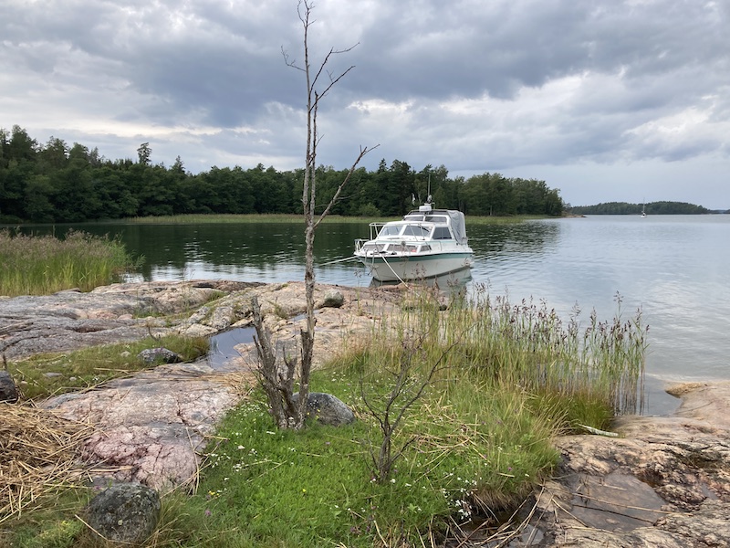 Perjantaiaamuna suuntasimme etelään päin. Menimme Bolanskäriin, jossa olimme kolmisen viikkoa aikaisemmin olleet. Hyväksi havaittu paikka. Tällä kertaa emme menneet sinne lahdukan pohjalle, vaan jäimme vähän matkan päähän pohjoisemmaksi. Oli paremmin tuulelta suojassa.