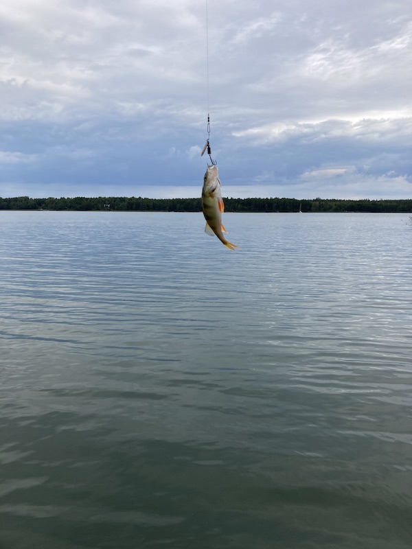 Sitten tuulensuunta muuttui enemmän länteen kuin olin olettanut, joten vaihdoimme entuudestaan tuttuun paikkaan lähemmäs lahden pohjaa. Tässä kohdin olimme kuin kahden tuulen välissä eli melkein tyynessä.