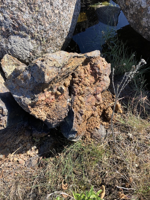 Matkalla tällainen mureneva kivi. Päältä kuten mikä hyvänsä, mutta sisältä ”höttöä”.