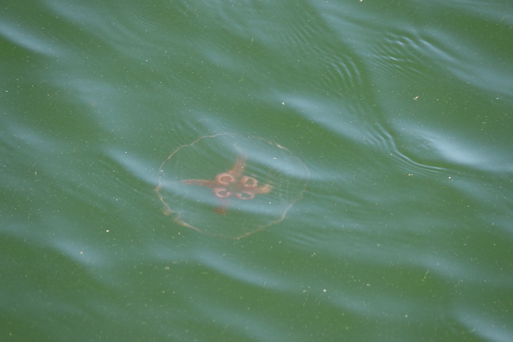 Illalla ja yöllä satoikin sitten välillä ihan reilusti. Onneksi saatiin olla sateelta suojassa Sarzan ”uumenissa”. Meduusoja oli täälläkin.