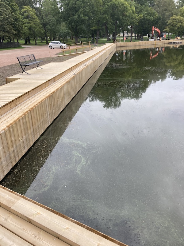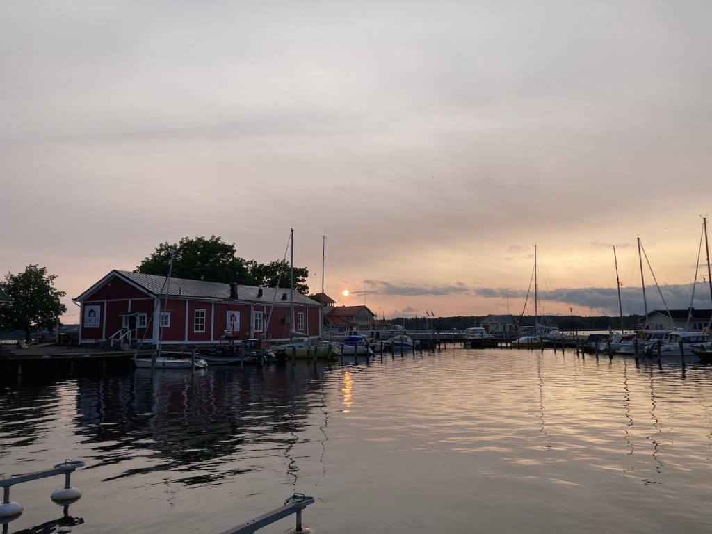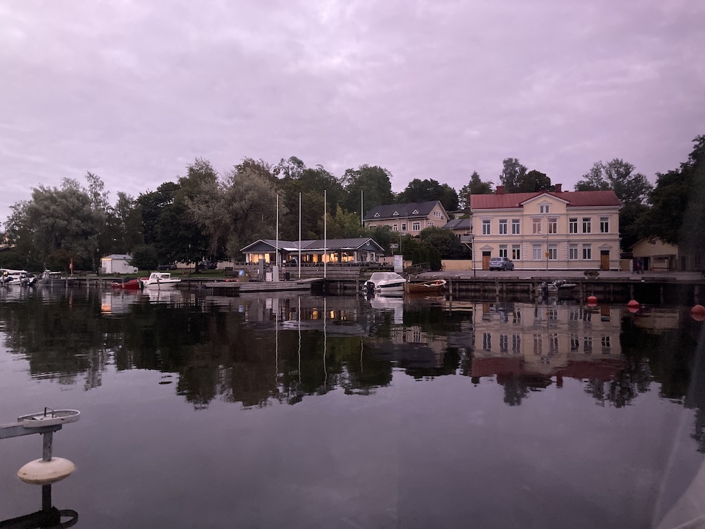 Illalla pääsimme saunaan jonka täällä joutuu itse maksamaan ja on siis yksityinen. Ihan kelpo löylyt. Taisin edellisellä kerrallakin mainita Tammisaaren blogissani, että vilpola puuttuu. Nyt sattui olemaan upea ilta ja maauimalassa oli porukkaa aika paljon, joten ei oikein voinut pitää pukkarin ovea auki. Yksi pariskunta oli jo tulossa sisään, kun ovi oli raollaan. Oven ikkunassa kissan kokoisilla kirjaimilla, että privat bastu. Olisi pitänyt olla varmaankin myös suomeksi 😉