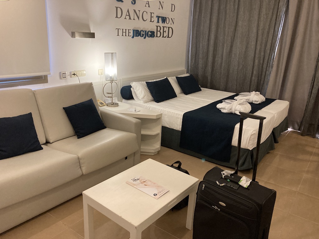 Olimme ottaneet suite junior huoneen ja se oli viisas päätös. Hieno kahvinkeitin, vaikka espresson tekisi ja teinkin, jääkaappi, joka täytetään virvokkeilla joka päivä ja kuuluu hintaan. Lisäksi pääsee spa-osastolle ilman lisämaksua.