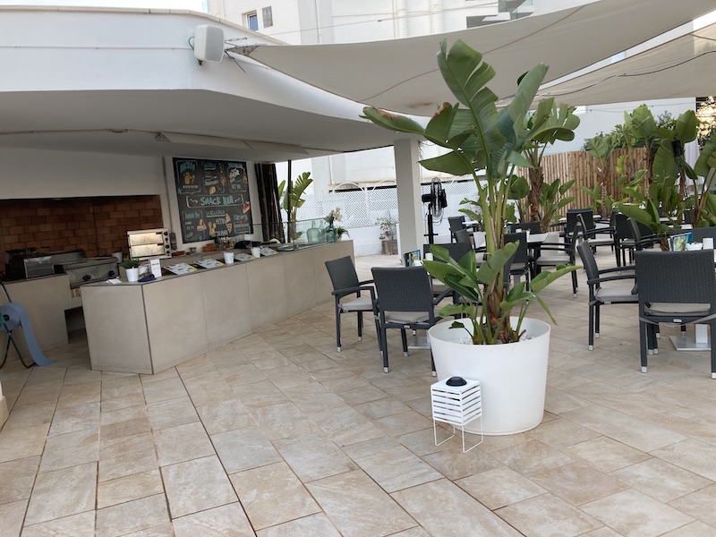 Hiekkarannalle on parin sadan metrin matka, joten se jaksaa vielä köpötellä. Porukkaa oli paljon, mutta tilaakin olisi vielä ollut. Rantakadun varrella on ravintola poikineen ja pistäydyimmekin yhdessä niistä. Salaatit syötiin ja ihan kohtuulliset olivat.