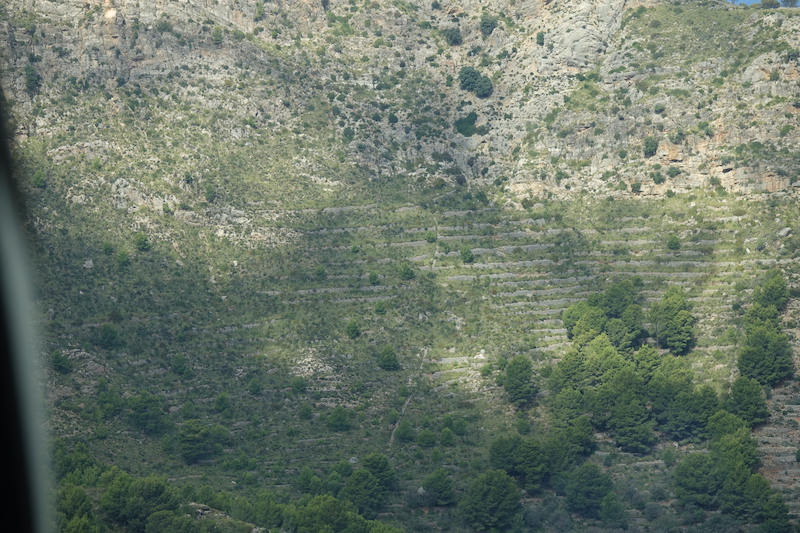 Vuorenrinteet ovat otettu hyötykäyttöön. Penkereitä melkein joka puolella ja niissä oliivipuita. Saarella onkin hyvä maine oliiviöljyn tuottajana. On siinä hommoo kun tuolta pikkuruiset oliivit käy keräämässä.