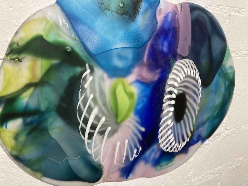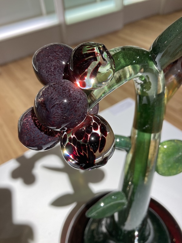 Kolmannessa kerroksessa oli Alma Jantusen näyttely. Osa töistä oli tehty neitseellisestä lasista mutta paljon oli töitä myös kierrätyslasista.