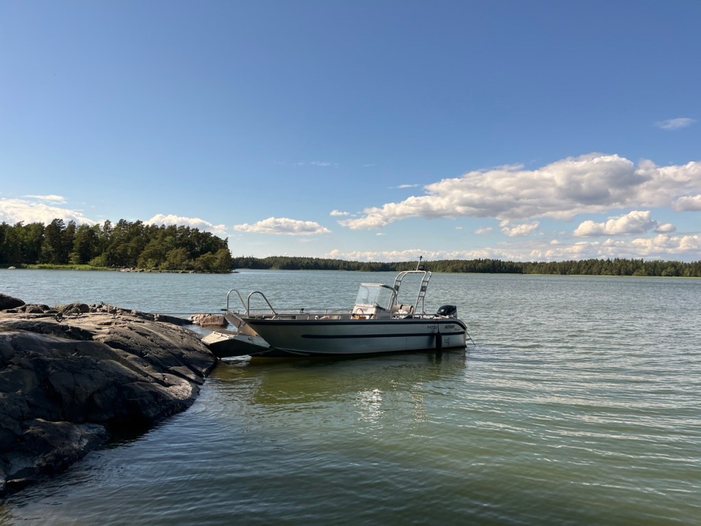 Muutama kalavene kävi lähettyvillä. Lähinnä tuon viereisen saaren rantamilla, joten hakuraku säilyi.