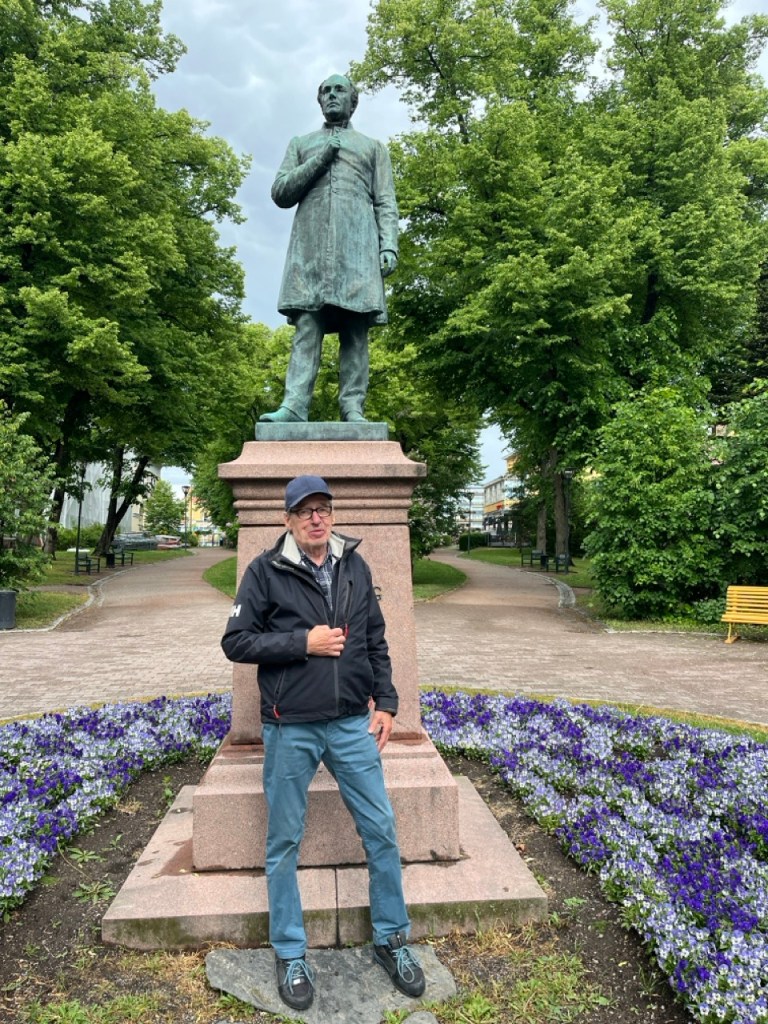Täältä matkalla syömään, kuljimme puiston läpi, missä pääsin poseeraamaan Runebergin kera.
