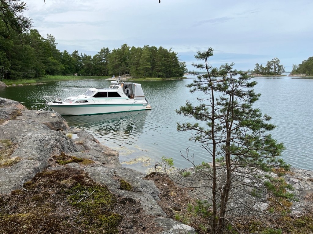 Melkein tyynessä kelissä saimme jatkaa matkaa. Inkoosta parikymmentä mailia länteen ja päädyimme Marskäriin. Olemme olleet täällä jo viime kesänä ja hyväksi havainneet. Varsinkin nyt, kun ovat luvanneet yöksi navakkaa itätuulta. Sitten tuulen suunta vaihtuu 180 astetta eli länteen. Tällainen laguuni tarjoa tässä tilanteessa varsin hyvän suojaisan ankkurointipaikan.