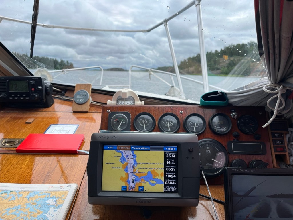 Lähdettiin jo ennen kymmentä liikenteeseen. Sateen ja tuulen uhka päällä väijyi päällämme koko matkan ajan. Muutama vesipisara saatiinkin, mutta onneksemme kuivana saatiin rantautua.