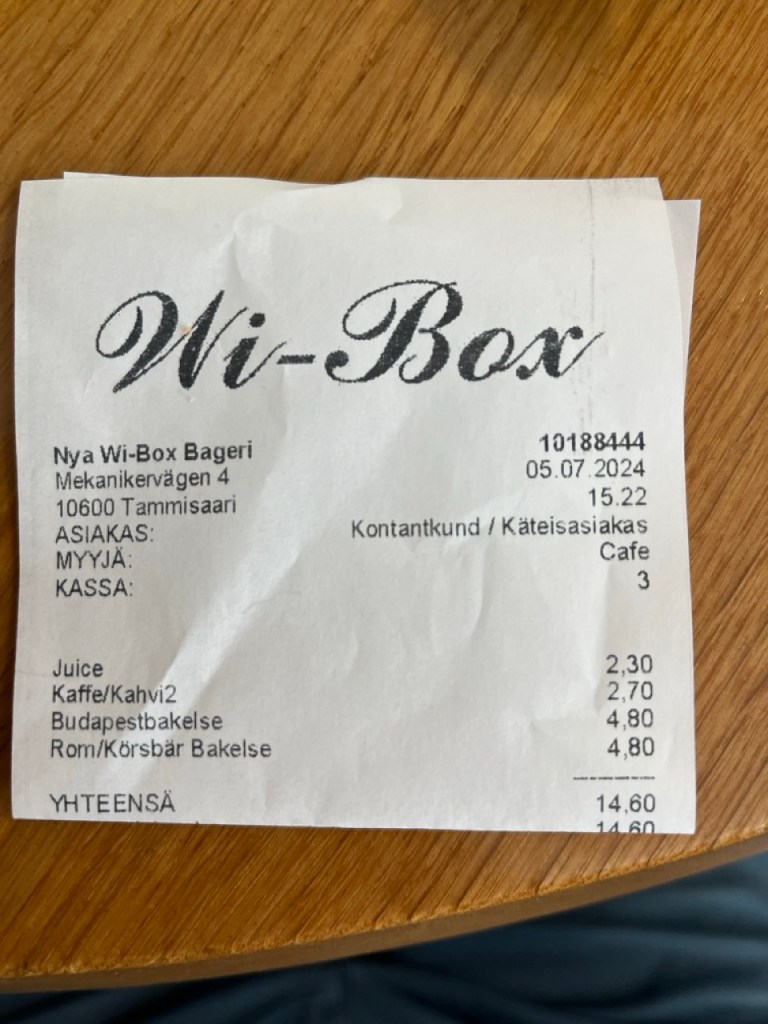Koska ravintolassa oli jälkkärinä vain mango-jotain juomaa, menimme tietenkin kunnon leipomo-kahvilaan. Tammisaaren paras sellinen. eikä ole hinnan kiroissa.