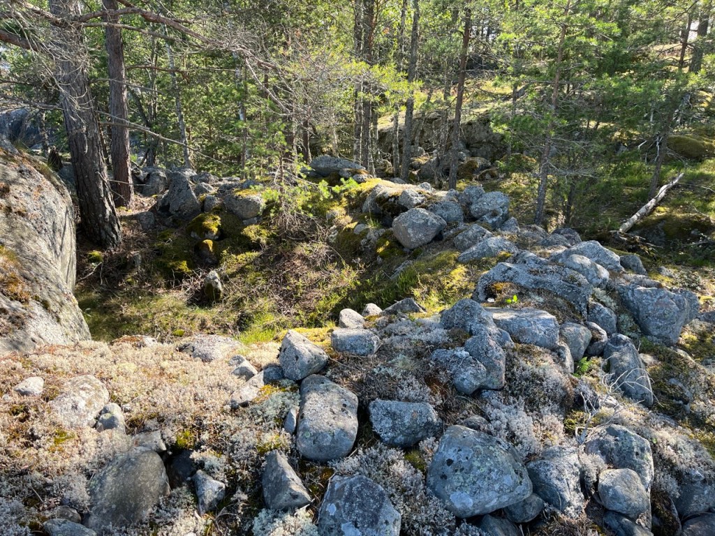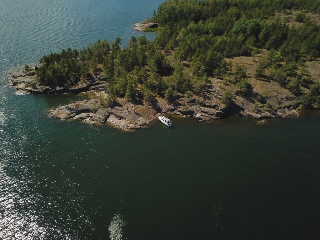 Tämä pieni niemennokka antaa hyvän suojan avomereltä tuleville aalloille. Veneestämme vasemmalle n 10 metriä, voi tulla isollakin veneellä/purkkarilla, koska siinä on jyrkkä pohjanmuoto. Onmeidänkin perän kohdalla vähän yli pari metriä syvyyttä, mutta oikean puoleinen ranta on pitkälle matalaa.