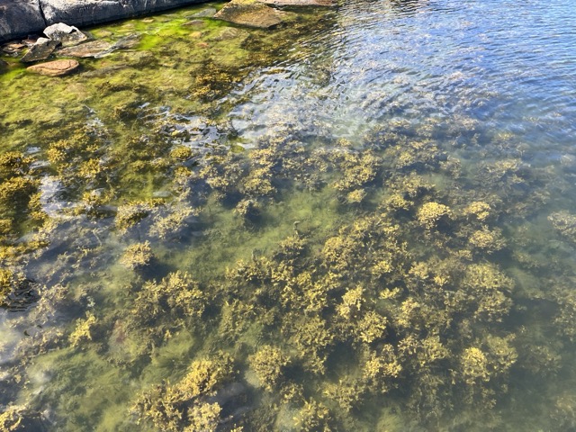Vesi on täällä tosi kirkasta ja rakkoleväkin voi hyvin. Veden lämpötila ei nyt ainakaan minua saa pulahtamaan. 14 astetta, hui.