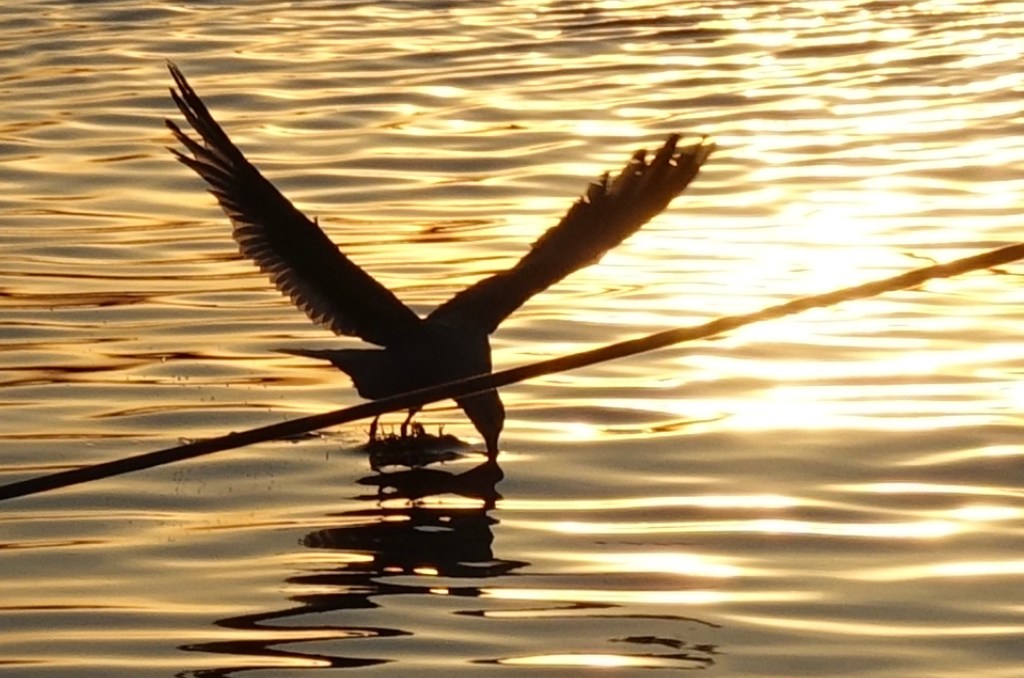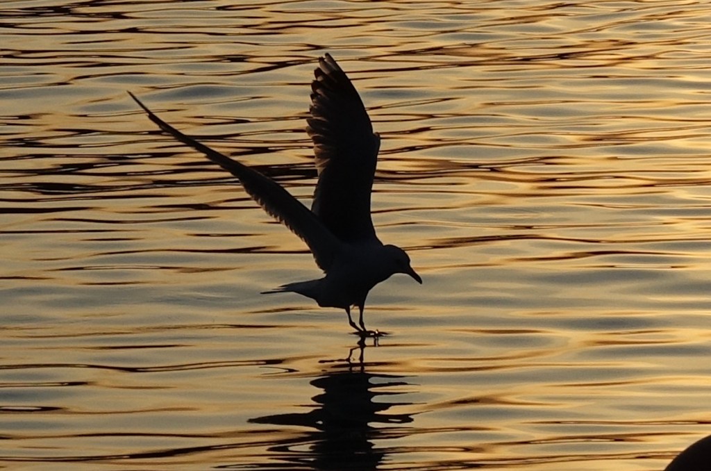 Siinä ihmetellessäni, lokit poimivat jotain poijun läheltä. Sony RX10 III kuva rajattu.