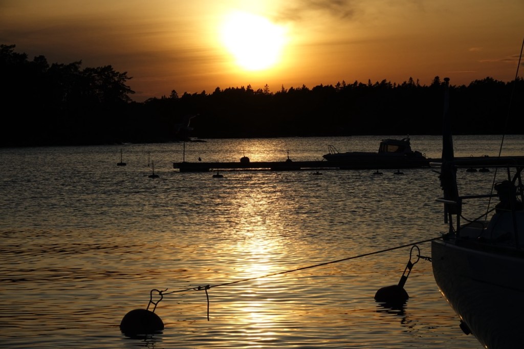 Nyt illalla alkaa jo puuskittainen tuuli olla melkoista. Näkyy olevan merisään mukaan 11-13 m/s idästä päin. Vene ei oikein tiedä missä asennossa se olisi poijun ja laiturin välissä. Tuuli tulee perästä, joten varmaankin se asettaa haasteen Sarzalle ja niin ollet ei osaa päättää, kummalle kyljelle antaa tuulen tulla.