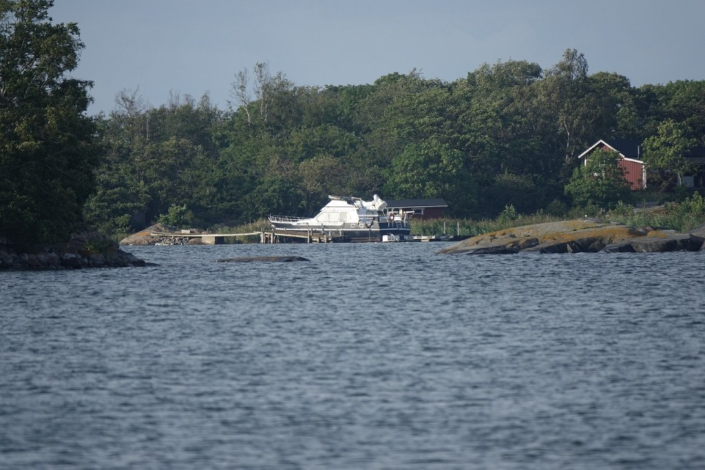 Tältä paikalta näkee paremmin Dane Bärsskärin mökkille ja laiturin veneelle. Ei näkynyt koko viikonlopun aikana minkäänlaista liikettä. Merikortissa ei tuolle saarelle löydy nimeä, mutta se on Storön koilliskulmassa oleva pieni saari.