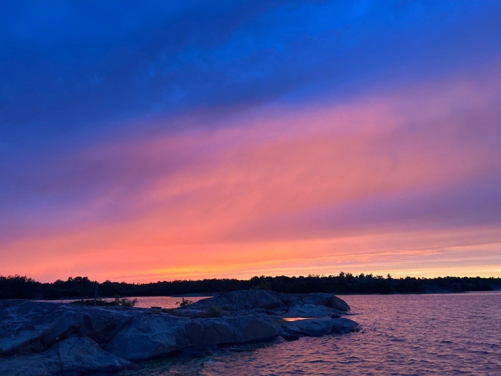 Aamuyöllä, kun tuuli tuiversi ja vene nyky jonkin verran, heräsin. Olipa upea taivas.