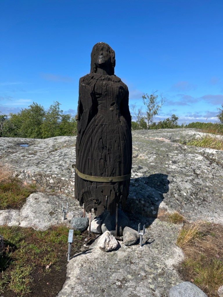 Aivan satamalaiturin edessä mäenpäällä on muistomerkit sekä ilmeisesti ruotsalaisen laivan keulakuva.