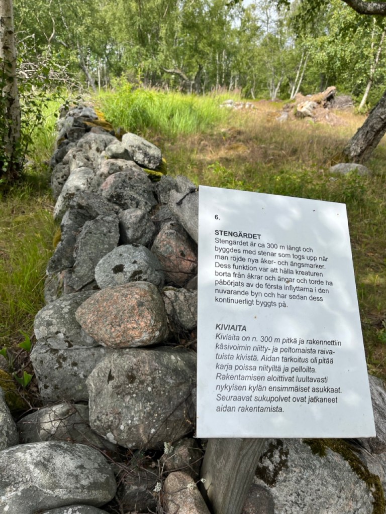 Se, että saarella on ylipäätään niittyjä, ovat saarelaiset olleet ahkeria. 300 metriä kiviä pinottu aidoiksi. Kyllä ei tämän päivän ihminen moiseen hommaan ryhtyisi. Käsipelillä hoidettu koko homma.